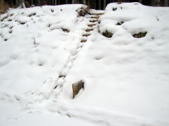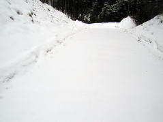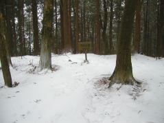 | 山行記 | ●愛知の130山の中では、月ヶ平と一緒に紹介されていたが、月ヶ平へは以前行ったことがあったので、今回はここだけにした。雪が積もる廃校跡に車を置き、誰もまだ歩いていない、雪で覆われた舗装路を行く。 ●登山口には雪で半分埋もれた案内板があった。そこから凍って滑りやすくなった木の階段を登り登山道に入る。道は踏跡の上に雪が積もった感じで、迷うところは無く、緩やかに登っていけば木の山名表示板のある山頂に着く。 ●展望も無いので、そのまま下りることにする。雪をかぶった木々が面白い。ヤブコウジやミヤマシキミの実の赤が雪の中で目立っていた。 ●登山口まで下りると、雪の積もった舗装道路のキャンパスに足跡でいろいろな絵を描きながら廃校跡へ戻った。 |