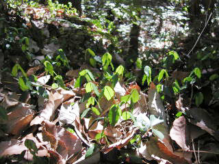 | 敷き詰められた落ち葉を踏みしめ大展望の広がる山頂へ | ||