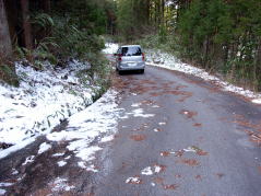 | 駐車地点 | カチカチに凍った道路 | 丸山登山口 | 丸山三角点 |