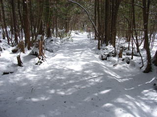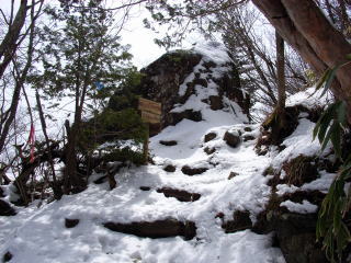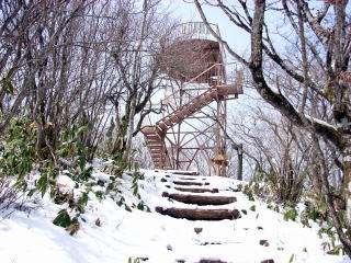 | 山行記 | ●丸山に登った後、茶臼山のあてび平でザゼンソウが咲いたという情報を聞いていたので茶臼山へ向かう。まずはあてび平駐車場に車を停め、ザゼンソウを探す。一周まわってみたが、どこで咲いているのかわからないので仕方が無く戻る途中、あてび島から駐車場方面へ小川を横切る辺りでやっと見つけることができた。 ●後からわかったことだが、入り口の案内板にこがザゼンソウが咲く場所としてちゃんと書いてあった。最初から確認しておくものである。 ●まだ雪の残る小川の中からぽつぽつとザゼンソウが頭を出しているのがわかる。近づいてよく見てみると、ウェブや図鑑で見たとおりの花が咲いていた。雪のせいか、少し痛んでいたようであまりいい写真は撮れなかったが、とにかく初めて見ることができたので満足した。 ●ここまで来たのだからと、このところ登ったことのない茶臼山に登ることにした。今回はたまたま見つけた東登山口から登ることに。 ●このコースは屋外活動ロッジの横から始まる。まだまだ多く残る雪で滑りながら次第に傾斜のきつくなる道を登ると、雷岩に出る。ここまで来れば頂上もあと一息。すぐに鉄製の展望台に出る。 ●そこからさらに緩やかな斜面を進むと今度はコンクリート製の展望台が現れ、傍らには三角点があり、ここが山頂にということだ。最近来たことが無いのであまりの変化に戸惑ってしまうほどだ。 ●この展望台からは、萩太郎山や奥三河の山々は見渡せるが、北方面の展望は先程の鉄製の展望台からのほうがいい。大川入山や蛇峠山などをはっきり見ることができる。 ●展望を楽しんだ後は来た道を戻る。コースタイム僅か20分の山登りだが、雪があるおかげでとても楽しい時間を過ごすことができた。 |