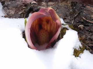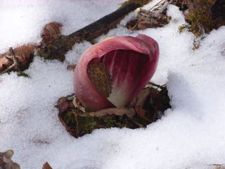 | 初めて出会ったザゼンソウと楽しい雪の茶臼山 | ||