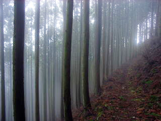 | 東海自然歩道は苔むした石畳 | よく手入れされた植林帯 | 三多気の桜と大洞山 |