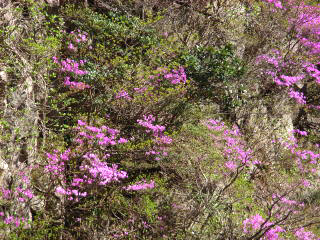 | 山行記 | ●鈴鹿7マウンテンの中でまだ登ったことが無かったのがこの釈迦ヶ岳。やっと登る機会ができた。 ●朝明渓谷の駐車場に車を止め、歩き出す。早速登りかと思ったら、すぐに下り、キャンプ場へ出てしまい、少しがっかり。その先で、川の右岸にも左岸にも立派な道がついており標識も無いところに出て少し迷う。 ●駐車場で管理の人が余り標識が無いので勘を働かせて登るように言われていたが、鈴鹿7マウンテンの他の山のようにしっかりした登山道と標識があるに違いないと思って気にもしていなかったが。早くも怪しい雰囲気となってきた。とりあえず、ここは右岸を選んで正解。その先再び左岸に移るとお地蔵様がある。 ●そこから道を間違えたらしく、登山道は急斜面となり踏跡が消えてしまった。間違えたと判断し、戻ろうとしていると、後から来た人はこの道でいいはずだというので、また登り始めた。しかし、やはり怪しいので、その人たちとは別れて、正しい道を探してまた引き返した。やっと道を見つけたが、無駄な労力と時間を費やしてしまった。 ●その後は迷うところは無く、庵座ノ滝を高巻く急登を登ると三段の滝。その先には最後の急登が待っている。急登の続く岩場からは鈴鹿の山並みが見え、足元にはショウジョウバカマが可憐に咲き、厳しい登りを気分的に和らげてくれる。 ●大蔭と呼ばれる崩壊地まで来れば、頂上まではあと一息。頂上は狭く、記念写真を撮って早々に移動。ハト峰方面への分岐の辺りで昼食と休憩。ここからは、気持ちのよい県境縦走路を歩く。 ●猫岳を越えてハト峰へ。大蔭や遠くには雨乞岳、御在所岳、入道岳などの鈴鹿の山並みが見える。ハト峰湿原に寄るが、花も何も無くがっかりする。ハト峰からは猫谷コースを下ることに。斜面にはコバノミツバツツジが満開。天気もずっといいままで、満足のできるいい山旅となった。 |