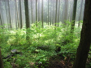 | 山行記 | ●前回ここへ来たときの写真の中にキンランとギンランの写真があった。その頃はあまり花の名前を知らず、写真もうまく撮れていなかったので、今回もう一度それらを探して登り直すことにした。 ●林道は、木の枝が邪魔するので車はあまり奥までは入れない。途中に車を止め、歩き出す。すぐに浅間山登山口。そこからは一登りで浅間山山頂との分岐。左へ少し登れば浅間山山頂だ。 ●後は稜線に沿って起伏の少ない登山道を進む。前回はどの辺りでキンラン、ギンランを見つけたのか思い出しながら歩くが、なかなか見つからない。弓張山を通過して、少し不安になってきた頃、1株だけササバギンランが咲いているのを見つけた。 ●結局この日見つけられたのはその1株だけ。時季が悪かったのか、盗掘にあってしまったのかわからないが残念。 ●今回は城山まで行くつもりは無かったが、せっかくなのでと行ってみる。 ●城山の山頂付近には広場があり、1台ワゴン車が止まっていた。傍には大きなアンテナが置いてあり、何か通信しているのか、電波を傍受しているのか少し気味が悪い。しかも、前回ここへ来たときも同じような車が止まって同じことをしていたのを思い出した。 ●帰りは同じ道を、見落としたキンラン、ギンランが無いか探しながら戻った。ここには、まだ咲いていないがオオバギボウシが多いので、今度はそれらが咲く頃に来るのがいいだろう。 |
