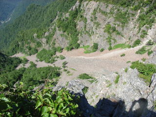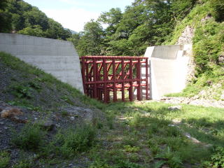 | 富士川源流 | 工事中の本谷第6ダム | 谷の向こうに見える阿弥陀岳 |