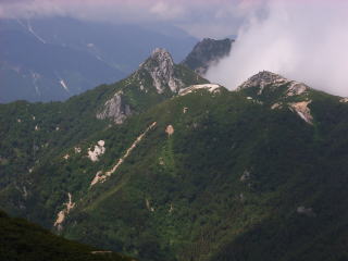| 赤牛岳 | 烏帽子小屋とニセ烏帽子 | 烏帽子岳 |