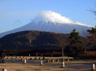 | 一日中山頂部に薄雲をまとった富士 | ||