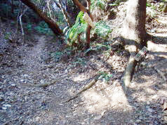 | 山行記 | ●いつも吉祥山ばかり登っていると、たまにはロングコースを歩いてみたくなる。そういうわけで選んだのがこのコース。 ●名鉄国府駅近くの駐車場に車を置き、始発の豊橋行きの名鉄電車に乗る。豊橋でJR東海道線に乗り換え三河三谷へ。電車を降りるとすぐに原山を目指して歩き始める。 ●市街地を抜け、ごみ焼却場跡の裏手の舗装路を登っていくと、山手に入る道がある。舗装はされていないが車が通れそうな平坦な道で、原山を巻くようにつけられている。原山を通り過ぎてしまうのではないかと心配になる頃、原山を差す看板があり安心する。そこから林道を離れ、ひと登りすれば原山山頂だ。 ●山頂からの展望はよく、星越峠や三谷の弘法山、ラグーナ蒲郡、蒲郡市街などがよく見える。ここは日当たりがいいのか、クサイチゴがたくさん咲いていた。原山から緩やかに下ると、何度か来たことがある砥神山あさやけコースの登山口に着く。歩き慣れた登山道を登り、展望のいい砥神山東峰へ到着。今日も蒲郡市街や三河湾方面がよく見える。走る新幹線やその音までよく聞こえる。 ●次に砥神山西峰へ。ここも展望がいいがまだ先は長いのですぐ出発。一旦、先程通ってきた分岐点まで戻り、御堂山へ向かう。明るくてなだらかな稜線上には、展望台もあり、季節になればいろいろな花が咲きそうで、季節を変えてもう一度訪れてみたいところだ。 ●やがて相楽キャンプ場に着く。そこから一旦道路に出て、コンクリートの階段もある急な道を登りきると御堂山の山頂。山頂には樹木の中に祠と三角点があり、東南方向に樹木が無いので、先程越えてきた砥神山や三河湾に浮かぶ三河大島などを見ることができる。 ●御堂山からいくつかのアップダウンの後、大きく下ると、最近無料化された三河湾スカイライン入り口がある国坂峠だ。ここは、宝飯郡御津町と蒲郡市との境となっており、スピードを上げた車の通行が激しいので、気をつけながら渡り、峠から五井山方面へ上る舗装道をしばらく進む。道がカーブするところに案内板があるので、それに従い山道に入る。この辺りはハナミョウガが多く、赤い実が暗い登山道沿いによく目立っていた。何度か舗装道を横切ったり歩いたりしているうちに、宮路山からの縦走路と合流する。真っ赤な実を付けたアオキの多い道をひと登りすれば、五井山山頂に着く。山頂には東三河の何処からでも確認できる大きな鉄塔が建っており、ここも三河湾をはじめとする大展望が待っている。三角点は、鉄塔の東の少し高くなったところの鉄塔寄りの隅にある。 ●さあ次は宮路山。さきほどの分岐点まで戻り、よく歩かれている縦走路を歩く。展望こそ無いが、よく整備され、アップダウンも少ないこの道では多くの中高年ハイカーに出会った。それほどの登りも無いまま宮路山に到着。ここからの眺めも素晴しく、本宮山や三河湾、今歩いてきた山々などが一望できる。 ●ここからはあまり情報が無いので、とりあえず、宮道天神社奥社へ行ってみる。そこからはいろいろな道が出ており、いきなり迷うが、方向的に正しそうな、奥社の一番奥から続く道を行くことにする。急な斜面を下り、一旦緩やかになると、直進する道と右に折れる道があり、踏み跡の濃そうな右の道へ進むとすぐ峠に出た。看板は無いがウェブで見た灰野坂峠のようなので一安心。そこから少し登ると、愛知ふるさと公園に出る。遠見山山頂三角点はそこからさらに数百メートル舗装道を歩いたところにある公園展望台の近くのフェンスの中。 ●ここからの展望も素晴しいが、ここからが一番の難関。新宮山へ向かう道を探すが、表示が無い。結局展望台から北方向に続く2本の階段の道の右の方が新宮山方面へ続いているようだ。以降は、心配とは裏腹なはっきりした道が続いており、途中には公園のアスレチックへ下りる道と国府方面への分岐まである。道はやがて峠に出る。峠にはハイキングコースの看板があり、今来た道の方向を指している。 ●そこから完全に道が消えた。仕方がないので藪に突入し新宮山方面と思われる方向へ進むと、道は崖となり下には舗装道が走っているという場所に出る。崖を迂回して舗装道に下り、舗装道を展望台のある方へ行く。新宮山は弘法山と呼ばれ、昔よく来たものだが、山頂というのを意識したことが無いのでどこが山頂なのかよくわからない。展望台から見て一番高そうなところを目指すことにする。やや藪っぽい林の中を、高い所を目指していくと石碑が建っていた。国土地理院の地図を見ると頂上らしきところに碑の記号があるので、どうやらここが新宮山山頂らしい。遠見山から新宮山へ至るコースは基本的には無いようだ。 ●ともかく、これで予定の7山全て登ることができたわけなので上出来。自己満足しながら国府駅まで戻り、約7時間の楽しい山旅を終えた。 |