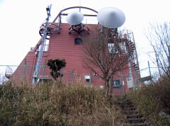 | 霊山三角点 | 霊山山頂にある電波中継施設 | 田代池遊歩道沿いの太いつらら | 田代池近くの陽だまりで昼食 |