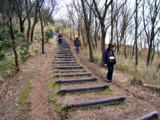 | 山行記 | ●杉花粉が飛び交うこの時季。登る山を選ぶのは大変だ。今回もガイドブックなどで、「杉」の文字が出てこない山を選んだ(結局杉の植林帯もあったが・・・)。 ●毎度思うが、伊勢湾岸道を利用すると三重県は近い。おまけに、ETCカードの割引を使えば高速代も思うほどかからない。結局豊川の集合場所から2時間で登山口に着いてしまった。 ●田代池入り口に大阪市伊賀野外教育センターの門があり、利用者以外進入禁止となっていたので、手前の空き地に車を置き、田代池畔の東海自然歩道を歩き、霊山登山口へ向かう。 ●無風状態で湖面に映る雑木の影が美しい。ショウジョウバカマも咲き始めている。20分ほど歩くと、野外教育センターの向こうに霊山登山口の案内板がある。 ●そこからいよいよ登山道に入る。急な道ではないが階段が設置してあるので歩き難い。階段横の登山者が歩くことによってできた道を選んで歩いて行くと、植林帯からアセビの多い雑木林に変わり、傾斜もやや増してくる。 ●急に視界が開けると9合目。伊賀盆地方面に展望が広がる。霊山寺方面から登って来る登山道には、数日前に降った雪がまだ融けずに残っていた。 ●そこからアセビの花咲く明るく緩やかな道を登り、最後に急な階段を登りきると山頂。山頂は中心が窪んだカルデラ火山のようで、観音立像の祀られた祠や、電波中継施設がある。山頂からの眺めは素晴しく、伊賀盆地や周囲の山々が見渡せる。日差しが暖かく風も無く気持ちがいいので、時間が経つのも忘れるくらいだ。 ●ここで昼食というにはまだ早すぎるので下山することに。霊山登山口まで下りたが、まだ時間があるので田代池をぐるっと回って戻ることにする。キャンプ場のある野外教育センターの対岸をめぐる歩道はところどころ崩れた危険な箇所があったが、鹿やケラなどが見られる自然豊かな道で、田代池の眺めも素晴しかった。 ●駐車地点近くまで戻ると、風のない陽だまりを選んで昼食。温泉に入り青山高原の風車群を見物して帰路に着いた。 |