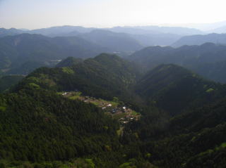 | 尾籠岩山から見る明神山 | のぞき岩から見る御殿山と奥三河の山々 | のぞき岩から見る尾籠の集落 |