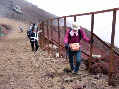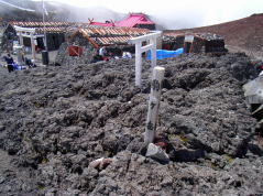 | 富士宮頂上の浅間神社奥宮 | 富士宮頂上で一休み | 剣ヶ峰直下のザレザレの急登 | 剣ヶ峰山頂 |