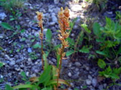 | 山行記 | ●今日は、山が初めての人たちを連れて行くことになったので、時間的にも標高差的にも短く、かつこの時期涼しいこの山を選んだ。七合目登山口や女神茶屋方面からは登ったことがあったので、今回は自分も初めての大河原峠から登ることにした。 ●豊川から高速道路を利用し3時間もあれば登山口まで着くと思っていたが、それが大間違いで、4時間以上かかってしまった。大河原峠までの道は全て舗装されていたが、七合目登山口を過ぎると道は荒れてきて、道路の亀裂や落石がいたるところで見られた ●大河原峠は標高2000m以上あり、気温も涼しいが風が強く、登山の是非を考えるほど吹き荒れていた。ヤナギランやマツムシソウ、ミヤマアキノキリンソウなどの高山植物が咲き競っていたが、風で揺れて写真も撮ることができない。 ●この強風の中だが、最初は樹林帯なので、とにかく行けるところまで行ってみようと出発する。最初は朝露のせいなのか、雨の後だからなのか、濡れて滑りやすい石だらけの道を登ることになる。ササとカラマツの道は最初はリンドウの蕾などを見かけたが他の花は何も見ることができなかった。 ●ここまで続いたササが突然消えると、モミやツガの樹林へと代わる。樹林の下にはカニコウモリやイチヤクソウが咲いている。やや急な登りが終わると平坦な道へと代わり、縞枯の部分ではところどころで視界が開け蓼科山頂部を見ることができた。 ●道は平坦なまま将軍平にある蓼科山荘に着く。アイスクリームの看板に目が止まるが、ここは先を急ぐ。 ●山荘からは傾斜の増した岩の道が続く。しかも岩が大きく、山が初めての人たちにはきついところだ。山頂近くでダケカンバの樹林帯から飛び出し、道は回りこむように山頂にある蓼科山頂ヒュッテの前へ続いている。 ●そこから、緩やかだが大きな石で歩き難い山頂部を、黄色いペンキに従って登れば三角点のある山頂に到着する。山頂からは隣の北横岳や南八ヶ岳、浅間山などを見ることができた。 ●山頂部は広く平坦で大きな岩が積み重なっており、中央部には祠、西の端には展望盤が設置されている。黄色いペンキはそれらを結ぶように続いているので、それに沿って展望盤まで行ってみると、これまで見えなかった白樺湖や美ヶ原、槍穂高などへと展望が広がった。 ●既に昼食時間となっていたので、弁当を食べ、のんびりと時間を過ごした後下山。すずらん温泉で汗を流し、そばを食べ帰路に着いた。 |