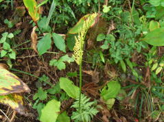 | 山行記 | ●豊川から国道151号線、257号線、153号線と通って昼神温泉のある阿智村へ。長野方面へ行く際によく通る道だが、ここへ立ち寄ることはあまりない。 ●阿智川を渡る橋の手前で左折し、舗装されているが狭い道を行けば、東山道の石碑があるところに出る。今日は周回コースをとる予定なのですぐ上の空き地に車を停め、歩き出す。 ●しばらくは車が通れるぐらい広い東山道を歩く。セキヤノアキチョウジやトリカブトなどを見ながら薄暗い未舗装の道路を歩くと、車で通るには少し怪しいぐらいの道になってくるるが、ここが登山道の入口だ。 ●ここからは薄暗いジグザグの斜面を登っていく。アキノキリンソウなどがぽつぽつと咲いており、花後で直立したアキノギンリョウソウなども見ることができた。 ●網掛峠は小さな広場となっており、説明の看板や展望所などが設けられている。 ●網掛峠からは東山道を離れ、再び薄暗いジグザグの急登を登る。いろいろな形をしたキノコがそこらじゅうから頭を出し、秋を感じさせてくれる。 ●傾斜が緩くなると山頂も近く、咲き終わったナガバノコウヤボウキやこれから咲くであろうコウヤボウキ、その外にもコアジサイやレンゲツツジの木も見られ、それぞれの咲く季節に訪れてみたくなる。 ●網掛山山頂は縦走路から少し離れたところにあり、分岐点には案内板も立てられているので見落とすことはない。展望はないが小広い山頂には三角点があり小さな山名の書かれたプレートが幾つかかけられている。 ●双耳峰のうちこのピークは西峰にあたるが、次は展望が良いといわれる東峰を目指す。アップダウンのない広い稜線を辿ればすぐに展望所のある東峰に到着する。 ●展望所はいささかか頼りないような細い木組みにコンパネが張ってあるだけのものだが、乗ってみると意外にしっかりとしている。生憎南アルプスは雲がかかって見えなかったが、麓の昼神温泉郷や飯田市街、それらを結ぶ中央自動車道を見下ろす絶景だ。 ●展望を楽しんだ後、下山にかかる。樹林の中のジグザグの急坂をひたすら下りると林道に出る。ここがこちら側からの登山口になる。 ●クサノオウやキツリフネ、サラシナショウマなどの咲く林道を歩き車まで戻る。後は昼神温泉へ入って帰路につくが、これだけ楽しんでも明るいうちに豊川まで戻ることができた。たまには近場の山もいいものだ。 |
