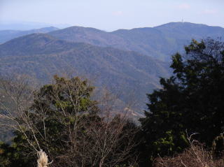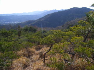 | 坊ヶ峰を振り返る。背後には海が見える | 448mピークの先から見る採石場と吉祥山 | 48mピークの先から見る本宮山 |