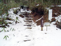 | 山行記 | ●12月に一度計画したが、計画した日にピンポイントで雨が降り中止になってしまったので、今回はそのリベンジだ。前日まで晴天が続いたが、この日の天気は下り坂という予報の中、最悪富士は諦めることとし、雨さえ降らなければよしとして出発する。 ●高速道路上でもどんよりとした雲が空を覆い富士は見えなかったが、富士川SAの辺りから明るくなり富士が見えはじめた。それから、御殿場ICを降り、乙女峠の手前まで雪をいただいた美しい富士の姿を拝むことができた。この日富士の姿を見るのはここまでだったが、期待していなかっただけに嬉しかった。 ●3回目の金時山だが、雪のなかった過去2回とは様子が違い、登山口から既に登山道に雪が見られ、しかも朝の冷え込みで硬く凍っていた。もっとも真冬の千メートルを超える山なので当たり前のことだが、過去のこともありアイゼンなどの用意をしていなかった。 ●同行者もみんな運動靴ではないのでとにかく行ける所まで行ってみようと慎重に歩を進める。緩やかな登りから尾根に取り付き傾斜も急になるが何とか行けそうだ。 ●やがて稜線に出るが、ここで明神ヶ岳から矢倉沢峠を抜けてくる道と合流する。後は山頂直下の急登を登り展望が一気に開ける金時山山頂だが、思ったとおり富士は雲に隠れて見ることができない。 ●この天気のせいか山頂の登山者は過去2回と比べ少なく、金時茶屋も珍しくすいていたので皆で評判の味噌汁をいただくことにした。すっかり体も暖かくなったところで、下りに自信のないメンバーは滑り止めの荒縄を購入、装着して下山を開始する。 ●気温も徐々に上がり、登山道の雪も緩んできており、登ってきたときよりも歩き易くなっていた。登って来る登山者があまりにも多く、すれ違いが多くて全然進まないので、矢倉沢分岐からは矢倉沢峠経由で帰ることにしたが、案の定登って来る登山者も少なく快適に稜線を歩くことができた。 ●矢倉沢峠からジグザグの道を暫く下ると別荘地の真ん中に飛び出す。ここからは舗装された車道を歩き金時神社の駐車場まで戻る。帰りは定番の御殿場市温泉会館へ寄って帰路に着く。 |
