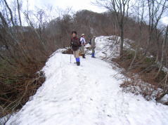 | ブナの多い東尾根 | 東峰 | 雪の上を歩く | 横山岳山頂(西峰) |