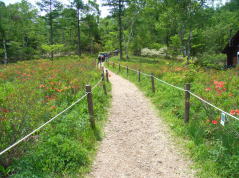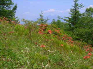 | 山行記 | ●梅雨の合間の山行計画なので予備日を設定したがどうやら晴れそうなので予定どおり実施することにした。甘利山のレンゲツツジのシーズンは駐車場が大渋滞を起こすということなので、6時出発では遅いかと思っていたが、10時頃到着の割には駐車場まですんなり入れたので一安心した。 ●駐車場が空いていれば空いていたで次に気になるのは、目的であるレンゲツツジの咲き具合だが、駐車場脇に咲き始めたレンゲツツジが見られたので、どうやら空振りにはならなくて済みそうだ。 ●登山道入口からまず甘利山を目指す。レンゲツツジは咲き始めだが見られるぐらいには咲いている。その下にはマイヅルソウやスズラン、ツマトリソウ、ミツバツチグリ等が咲き、上ではズミの花が満開で一際目を引いていた。 ●甘利山まではさほど時間がかかるわけではないが、天気もよく、富士山も薄っすらとではあるが見えたり、花々を見たりでなかなか先へ進まない。山頂近くではサクラスミレやオオヤマフスマ、ミヤマニガイチゴ等も咲いていた。 ●甘利山山頂は大きな広場になっていて、既に多くの登山者で賑わっていた。山頂からは富士山をはじめとして、これから登る千頭星山や八ヶ岳等を見ることができた。 ●まだ先があるので早々に甘利山山頂を後にし、千頭星山を目指す。一旦下りもう一度登ったところが奥甘利山と呼ばれるピーク。再び下り急な登山道を登り、途中青木鉱泉への道を分ければすぐに大西峰と呼ばれるピークの一角に出る。途中の登山道沿いには今まで多かったレンゲツツジやズミに加えてヤマツツジやベニバナノツクバネウツギ等も目立っていた。 ●大西峰からは笹原の緩やかな道となり、鳳凰三山の見える展望地を越えて一登りすれば今日の目的地である千頭星山に到着する。千頭星山山頂は樹林に囲まれ展望がなく、しかも狭い中に大勢の登山者が休憩しているので、記念写真を撮るだけにして、先程の展望地まで戻って休憩兼昼食とすることにした。展望地も大勢の人たちが休憩していたが、こちらは5人と少人数なので適当なところを見つけることができ、鳳凰三山を見ながらの贅沢なひと時を過ごすことができた。 ●休憩後来た道を戻るが、やたらと20人前後の団体が多く、すれ違いで結構時間をロスしてしまう。極めつけは3〜40人もの団体とすれ違うことになり、嫌というほど待たされてしまった。さすが花の名山と言いたいところであるが、もう少し他の登山者への配慮はできないものかと感じざるを得なかった。 |