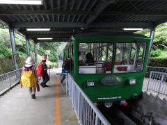 | 山行記 | ●那須岳へ登ることになったが、1泊なのでそれだけではもったいない、といってもボリュームのある山をガッツリ登る気も無いので、4年前に一度登ったことがあるが、この筑波山を選んだ。天気も良くなさそうだし、いざというときにはケーブルカーやロープウェイもある。 ●豊川を朝5時に出て、心配された首都高速の渋滞もあまり無く、10時前には登山口の筑波山神社近くの有料駐車場に到着。早速車を置き出発する。後でわかったことだが、筑波山神社にもっと近い観光土産店や商店が同じ値段(500円)かそれよりももっと安い値段(300円)で駐車場を提供していた ●登山道は、筑波山神社の向かって左手から始まる。ケーブルカーの駅を見送り、薄暗い樹林の中、これまで降った雨で湿った、階段の多い道を登っていく。ヤブランやガンクビソウ、ヤブハギなどがぽつぽつと咲いていた。 ●「ツクバネ」、「筑波石」など説明看板を見ながら登って行くと、少し明るい所に出る。ここがケーブルカーの中間点で、緑の「わかば」号と赤い「もみじ」号がすれ違うところだ。ここは、センニンソウやノブキ、イヌトウバナなどいろいろな花が咲いていた。 ●ここからしばらくはケーブルカーの軌道を下に見ながらの登りとなる。やがて軌道はトンネルに入るが、登山道は丁度その上を越えていく。その先の「男女川」と案内のある水場では美味しい水を飲むことができた。また、この辺りからキバナアキギリが目立つようになる。時期的にまだ咲いているものは少ないが、特徴のある鉾形の葉をいたるところで見かけた。 ●最後の上りを登りきると御幸ヶ原の一画、幸雲亭の前に出る。御幸ヶ原には、前回来た時には無かった新しい公衆便所が建っていた。幸雲亭で少し休憩をした後、まずは男体山を目指す。御幸ヶ原から男体山頂までは15分程。ツルニンジンやオヤマボクチが咲く登山道をひと登りだ ●男体山山頂には男体山神社があり社務所もあるが、そこには人が常駐していてお札やお守りなどを販売していた。また、神社の一画がテラスになっており、麓の田園風景を見ることができた。 ●男体山を下り、御幸ヶ原を通り過ぎて女体山を目指す。登山道は、途中「ガマ石」や茶店のある「セキレイ石」を通り緩やかに登っていく。そして最後のひと登りで、百名山筑波山の山頂でもある女体山に到着する。ここにも社務所があり、人が常駐していた。女体山山頂には一等三角点があり、大展望が広がるところだが。今日は雨混じりのガスがかかっていて視界は無かった。 ●女体山下山後、御幸ヶ原からは同じ道を下りることになるが、雨が降っていたのと、ケーブルカーに乗ってみたくなったのもあり、今回はケーブルカーで下りることにした。 |