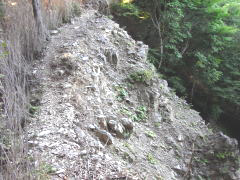 | 獣の臭いが生々しいヌタ場 | 丸盆岳山頂 | 林道沿線には名も無い滝が多い | 戸中のゲート |