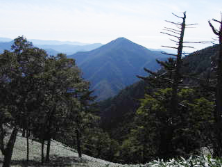![]() 黒法師岳の下りから見た丸盆岳 |