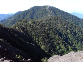 ![]() 黒法師岳への登りから見た前黒法師岳 |