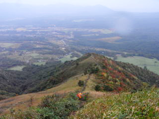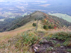 | 五合目から見る蒜山高原 | 紅葉に染まる山肌 | 五合目付近から登山口方面を俯瞰する |