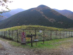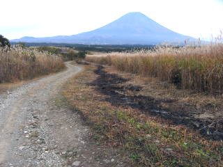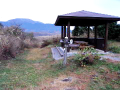 | 道の駅朝霧高原 | 迂回路入口と毛無山、雨ヶ岳 | 自然歩道本コース出合の東屋 | 麓の公衆便所 |