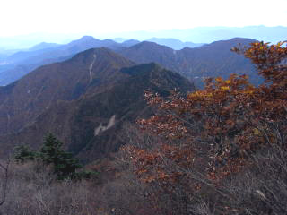 | 雨ヶ岳の下りから見た紅葉と本栖湖 | 竜ヶ岳から見た鳳凰三山 | 竜ヶ岳から見た北岳、間ノ岳 |