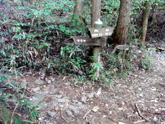| 東海自然歩道出合 | A沢貯水池 | 梶原の吊橋 | 自然歩道本コース、迂回路分岐 |