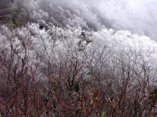| 思いがけず霧氷に出会えた晩秋の北信五岳 | ||
