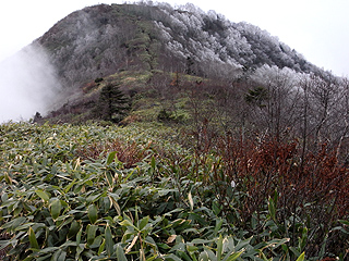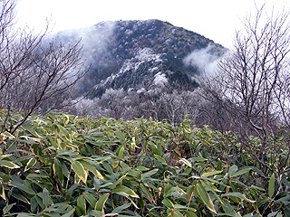 ![]() 飯綱山の西の山頂部を霧氷が覆う |