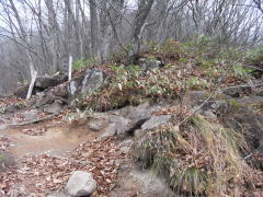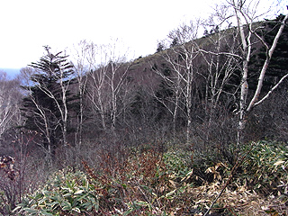 | 山行記 | ●北信五岳(飯綱山、戸隠山、黒姫山、妙高山、斑尾山)と呼ばれる山々には以前から魅力を感じていたが、なかなか登る機会が無く、これまで僅かに妙高山へ一度登ったことがあるだけだった。今度こそはと思い、黒姫山とどちらにするか迷ったが、朝発なので行程の短い飯綱山に決めた。 ●豊川を5時に出発し9時過ぎに登山口の飯綱大明神前に到着。駐車場を探すがよくわからないので路駐してあった車に続けて駐車した。後からわかったことだが、もう少し下に登山者用の駐車場があったようだ。天気は予報通りの曇りで、山も中腹から上はガスっていて見えないが、とにかく出発することにする。 ●登山道は飯綱大明神の鳥居をくぐって針葉樹の中を進む。すぐ先で林道と交差するが、ここにも鳥居があり登山道の案内に従って直進する。カラマツやコナラ、ミズナラの落ち葉を踏みしめながら緩やかに登っていくと一の鳥居跡地を経て第一不動明王が祀られているところに着く。以降十三仏が次々と現れ、次は何があるのかと楽しみで、単調な登りも紛らしてくれる。 ●登山道は次第に傾斜が増し、ジグザグの道になる。時折晴れるガスの合間から飯綱高原の見事なカラマツの黄葉を見ることができた。市観光課の水質検査結果がかけられている水場を過ぎ、短い鎖場を越えると、天狗の硯石という岩のある場所に着く。その上からは短いササの生える展望のいい道になるが依然ガスが多くて展望が利かない。 ●やがて、中社から登ってくる西登山道と合流し、ひと登りすれば飯綱神社のあるピークに到着する。この頃からガスも晴れてきて、山頂方面が見えてきたが、西側斜面の木々を霧氷が覆っていることにここで始めて気が付いた。山頂部の西斜面に広がる霧氷の木々と緑のササとのコントラストがとても美しく、この予想外のご褒美に感激した。 ●ピークから山頂へは携帯トイレブースの横を通って少し下り、軽く登り返すだけだ。飯綱山山頂は短い笹が生えるだけの広場で、ガスが無ければ360度の大展望が広がることだろう。残念ながら今日はガスで見ることはできないが、時折晴れるガスの合間に高妻山などが姿を現した。そのかわり霧氷は飯綱神社のあるピーク方面や反対側の霊仙寺山の山頂部にも広がっているのを見ることができた。 ●山頂は風も弱く意外と寒くなく、また、ガスが晴れる時間が徐々に増してきたので、暫く粘れば展望が開けるかと思って昼食や霧氷の写真を撮ったりしながら待ってみたが、すぐには晴れそうもないので下山することにした。しかし、再び神社のあるピークに着いたとき、雲の間から北アルプスの山々の雪の山腹を見ることができた。 ●下山時は往きと違ってガスも少なくなり、まだ霧氷が残る西登山道や見事なカラマツの黄葉が広がる飯綱高原を俯瞰することができた。下山後大谷地湿地から見た飯綱山は霧氷が残り、下山途中に俯瞰したカラマツの黄葉も見事だった。 |