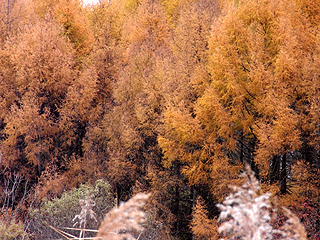 | 白樺も美しい | 大谷地湿原の周囲のカラマツの黄葉 | 大谷地湿原から見る飯綱山 |