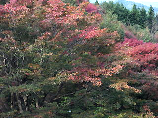 | 宮路山から見下ろす紅葉の休憩所方面 | 宮路山から見下ろす展望の丘方面 | 宮路山山頂付近の紅葉 |