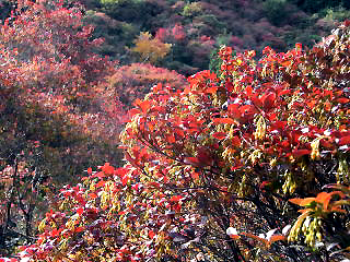 | コアブラツツジの紅葉はいまひとつ | コアブラツツジの紅葉 | 宮路山もみじまつりで賑わう第一駐車場 |