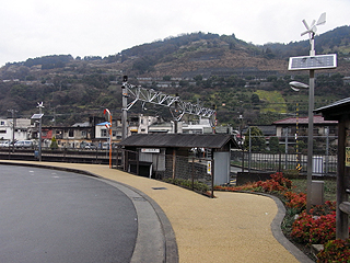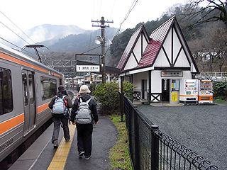 | 山北駅の無人の入口 | お洒落な駅舎の谷峨駅 | 国道の陸橋から東名高速と大野山が見える |