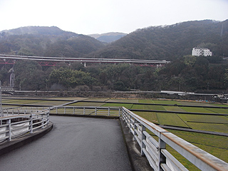 | 山行記 | ●「富士山の見える山」をテーマにしたガイドブックには必ず載っているのがこの大野山で、一度は登ってみたいと思っていたが、遠いというイメージが強くてなかなか登る機会が無かった。しかし、富士の見える山もそろそろ近場は登り尽してしまっているので、今回ついにこの山に登ってみることにした。 ●山北駅の近くにある山北町役場の駐車場に車を置き、JR御殿場線で隣の谷峨駅まで行く。お洒落な駅舎の谷峨駅から、コース案内に従って陸橋で国道を渡り田圃の中を歩き、傾斜のある吊橋で酒匂川を渡る。それから九十九折の舗装道を上ると、「大野山ハイキングコース入口」という牛の看板があるので、それ従って民家の間から山道に入る。 ●暫く登ると道は町道に出会うが、綺麗なトイレや東屋があり、その近くでは桜が咲いていた。その後旧道を横断すると、今度は林道と出合う。林道から道はジグザグになり高度を稼いでいく。展望も開け、金時山や明神山など箱根の山が見えるが、肝心の富士山は残念ながら厚い雲に隠されたままだ。 ●傾斜が緩くなると山頂は近い。大野山の山頂部一帯は神奈川県の乳牛育成牧場になっており、全体的になだらかで展望がいいので、どこが山頂なのかはっきりしないが、山名表示や方位板のある辺りが山頂なのだろう。ここには立派な公衆トイレもある。展望も、雲が無ければ丹沢連峰や富士山を間近に見ることができるのだろうが、山を隠す厚い雲は相変わらず取れない。 ●山頂から舗装道をそのまま直進し、途中舗装道と別れ、暫く進むと山北駅方面への案内があるので、それに従って樹脂製の疑木の急な階段を下る。やがて地蔵岩で舗装道と出合い、急な舗装道を下れば共和小学校に出る。小学校の先で、地元の人に教えてもらった山道に入り、民家の庭先に続くような道を下って鍛冶屋敷の集落に出る。後は車の通る舗装道を東名高速道路の下を通って国道に出た後、山北駅まで戻り、車に乗って途中同行者を置いてきた喫茶店へ迎えに行った。 |