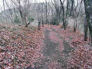 | 町道出合辺りから見た大野山 | 旧道出合 | 旧道出合付近の登山道 |