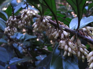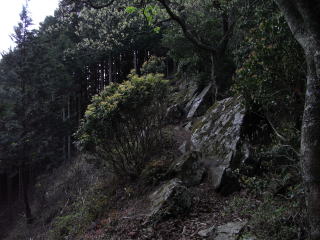 | 山行記 | ●この時期になるとここのヤマイワカガミに逢いたくなる。ここのところ毎年いろいろな人を連れて来ていて、今日を含めて4年連続でこの山を訪れたことになる。 ●いつものように豊川市街から杣坂峠を越えればいきなり岡崎市、とはいっても昔の額田町だ。行く道々には見事に咲いたヤブデマリの白い花や、フジの花が一際目を引く。 ●いつもの空地に車を止めると、今年は暖冬のせいか、昨年まだ花が見られた駐車場所のすぐ傍にあるウワミズザクラの木は、花がすっかり終わっており、それでは、昨年丁度いい時期に当たったヤマイワカガミは大丈夫かと心配になる。 ●とにかく行ってみなければわからないので出発する。駐車場所から今来た舗装道を少し戻ると登山口の案内があるので、鋭角に戻る方向のコンクリート舗装の林道を緩やかに登っていく。やがてコンクリートの橋を渡ったところで道が二手に分かれるので、案内に従って右手のコンクリート舗装された急な狭い林道を上る。この辺りは暗い植林帯が続くが、今年はイズセンリョウの花がよく咲き、地味な花だがこれだけ咲くとさすがに目を引く。 ●林道は沢筋を詰め、少し広くなった林道終点からさらに進み、行く手が明るくなってくると林道に出る。林道を横切ると向かいの沢筋から再び山道に取り付く。登山道はその辺りから急な斜面をジグザグに登るようになる。カンアオイの葉とニョイスミレの白い花がぽつぽつと見られ、励みとなる ●稜線分岐まで来れば後は稜線をアップダウンしながら山頂を目指すだけだが、時折展望の広がる岩場などがあり、新緑の山肌や登山口近くの宮崎小学校などがよく見える。 ●展望のいい岩場を過ぎると山頂直下の急登が始まる。急登の途中に咲くヤマイワカガミは少し時期が遅めだったがよく咲いていて一安心。守り続けたい自然だ。 ●そこから山頂まではほんの一登り。山頂は展望もなく暗くて狭いが、少し南に下った所に露岩の展望所がある。そこからは、本宮山やシンボルの鉄塔の無くなった五井山、そして三河湾が見渡せる。この時期にしては冷たい風の吹く北斜面とは打って変わって汗ばむほど暖かい。 ●展望とヤマイワカガミを十分楽しんだ後、急な斜面を慎重に下る。これだけ楽しんで、下山したのは10時前。まだまだこれから何かが出来てしまう時間だ。たまには近い山もいいものだと、そして近くにもこんなにいい山があるのだということを改めて実感しながら帰路に付いた。 |