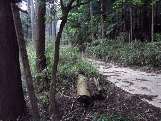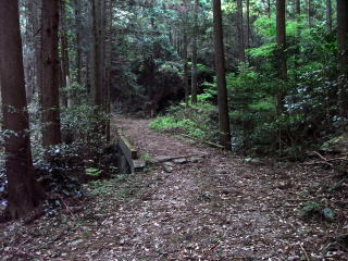 | 登山口からは舗装された林道が続いている | コンクリートの橋を渡った所が林道分岐 | 林道出合 |