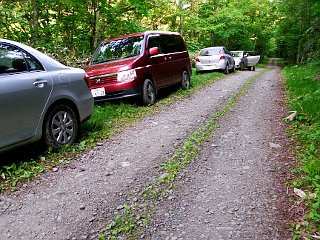 | 駐車地点(地元ナンバーが多い) | 冷水コース分岐 | 夕張岳山荘 |