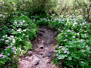 | シラネアオイ咲く登山道 | 登山口 | 帰路姿を現したエゾシカ |