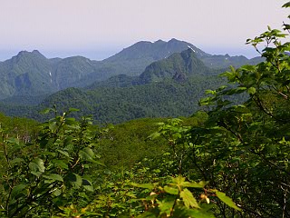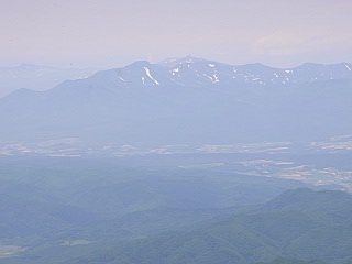 夕張岳山頂から見た前岳と歩いてきた道 |