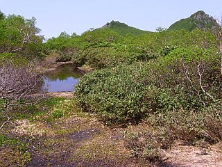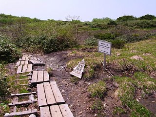 | 前岳湿原入口 | ミズバショウとエゾリュウキンカ咲く谷筋 | ひょうたん池と前岳 |