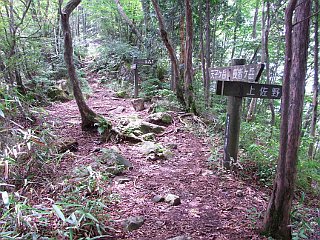 | 山行記 | ●富士宮に行く用事が出来たので、せっかくなのでついでにどこかの山へ登って行こうとこのコースを選んだ。高速料金の休日特別割引と夏休み中ということもあって、途中のSAやPAはどこも朝から混雑していた。用事を済ました後早速田貫湖畔の県営キャンプ場下にある駐車場を目指した。やはり夏休みなのでキャンプや釣りの客で駐車場は既にほぼ満杯状態だった。 ●身支度を整え、キャンプ場のバンガローの建つ斜面を登り始める。早くもゲンノショウコやミズヒキ、ヒメヤブランなどが出迎えてくれる。キャンプ場を過ぎると木の階段が整備された樹林帯の登りとなり、暫く行くと長者ヶ岳へと続く尾根上に付けられた東海自然歩道と出合う。 ●そこからは、よく整備された東海自然歩道を歩き長者ヶ岳山頂を目指す。半分植林で半分自然林という尾根道は緩やかに登っていく。ミヤマウズラが樹林の中で、スポットライトを浴びているように輝き、ヤマホトギスやナガバノコウヤボウキ、アキノタムラソウなどもよく目立っていた。 ●ベンチのある休憩所を過ぎると休暇村富士からの道と合流するが、ここが約半分の地点だ。東海自然歩道は更に緩やかに登っていく。フシグロセンノウやイヌショウマ、キンミズヒキなど花の種類も豊富になってくる。意外と長く感じるこの登りだが、山頂に出る時は意外とあっけない。 ●長者ヶ岳山頂は小さな広場で、樹林に囲まれているが、東の方向だけは富士山を見ることができるようになっている。この日はガスっぽく富士山にも雲がかかっていたが、時折ガスの切れ間から山頂部を見ることができた。山頂ではキンミズヒキやボタンヅルが群生していた。。 ●山頂で少し富士の眺めを楽しんだ後天使ヶ岳を目指す。稜線の道は最初緩やかに下るが、やがて傾斜も急になり、下りきったところが天使湖方面へと続く東海自然歩道との分岐でだ。そこから少し登り返せば、どこが山頂なのか分からない天使ヶ岳山頂に到着する。 ●天使ヶ岳山頂のすぐ下には広場があり明るいがやはり樹林に囲まれ展望はない。富士山が展望できるのはその広場の東へ少し下りたところで、ここも樹林の合間から富士山が見えるようになっている。長者ヶ岳山頂の時よりもガスが多くなっていたが、かろうじて富士山を見ることができた。 ●天使ヶ岳からは白糸の滝方面へ下山を開始する。緩やかに下る登山道は、芝川方面への道を分けると次第に急な下りとなる。急な尾根にジグザグに付けられた道はザレていて滑りやすいので慎重に下る。途中整備中の林道と2度ほど出合うが、3度目に出合うのはは舗装された林道で、その林道をそのまま北に向かえば休暇村方面へ行けるらしいが、ここは林道を横断して山道を白糸の滝方面へ進む。 ●さらに進むと今度は舗装された林道がT字に交差するところに出る。どうやらここが天使ヶ岳の登山口になっているらしい。最初は白糸の滝まで行き、タクシーかバスで田貫湖まで戻ろうと思っていたが、案内では白糸の滝まで2.2km、田貫湖キャンプ場まで4.1kmと書いてあったので、この際田貫湖まで歩いて帰ることにした。 ●舗装道をひたすら歩く。思ったより上り坂が多く少し後悔するが、ここまで来たの以上戻ることは考えられない。やがて車の通りの多い道に出てさらに歩いて行くと、天使の森というキャンプ場に出る。ここも多くの家族連れの人達で賑わっていた。天使の森の先で田貫湖という案内が山道を指していたので、それに従って再度山道を登った。 ●結局その山道は休暇村富士へ続く舗装道に出るための道で、そのまま舗装道を歩いても休暇村富士に出ることができたのだが、途中、ツチアケビのウインナーのような果実を見ることができたのは収穫だった。 ●休暇村富士は立派な建物で、各所に富士山を見るためのデッキが設けられており、多くの人が、いつの間にかガスも晴れてよく見えるようになった田貫湖の向こうの富士山の展望を楽しんでいた。 ●休暇村富士からは田貫湖畔に付けられた歩道を歩くが、レンタサイクルが多く歩き難い。釣り客も多く、湖畔で釣り糸を垂れていた。田貫湖を前景とした富士山の展望は素晴らしく、風がなければ逆さ富士も見ることができたに違いない。そんなことを考えながら歩いていると、思ったよりも早く、朝駐車した県営キャンプ場に着くことができた。 |