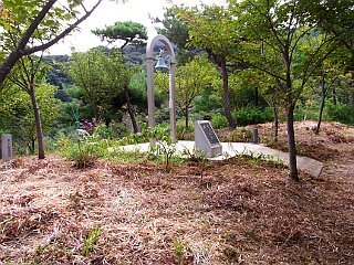 | 比丘尼駐車場とおすすめの小路入口 | 東屋手前から見た本宮山と吉祥山 | 愛の鐘 |