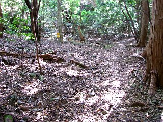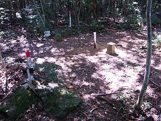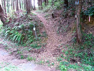 | 新城方面下降点付近から見た雨生山 | 新城方面下降点 | 新城方面へ下る途中で見た金山 |