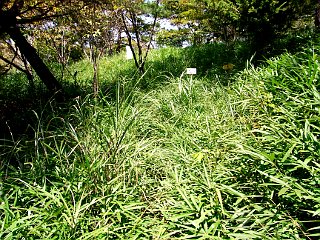| 山行記 | ●今日は所用があって休暇を取ったが、空き時間があったので久しぶりに比丘尼城址と金山へ行ってみることにした。朝はゆっくりと家を出て、比丘尼城址の駐車場をスタートしたのは9時前だった。この時季のこの時間帯なので暑さが心配だったが、風も涼しく意外と暑さは気にならない。 ●東屋までの緩やかな道沿いは、ノギランやワレモコウ、ツルボなどの花が咲いている外、キキョウの咲き残りやエンシュウハグマの蕾も見ることができた。天気も良く東屋からは本宮山や吉祥山などがくっきりと見えた。 ●東屋を後にすると、やや急な坂が比丘尼城跡まで続く。一帯にはオミナエシやサワシロギクが咲き、まだ早い時間なので咲いていないユウスゲやようやく蕾を付けだしたオケラなど、植物の種類も豊富になってくる。 ●比丘尼城址の先には愛の鐘があり、何時ものように一鳴らしして先へ進む。その先の分岐で、ここまでササが刈られ歩き易かった「おすすめの小路」と分かれる。すぐに樹林帯に入りササもなくなり歩き易くなる。何時もは暗いという印象を持つこの樹林帯も今日は天気が良いためか木漏れ日が差して明るい感じだ。 ●鉄塔巡視路と分かれ更に上っていくと林道に出る。林道を横切り反射板の案内に従ってジグザグの道を登れば、その反射板のある金山山頂に着く。 ●金山山頂は樹林に囲まれ展望はないが、反射板のところからは吉祥山などを展望することができる。金山からは時折ササが茂る県境稜線を、アップダウンしながら徐々に高度を下げていく。 ●やがて、超塩基性といわれる蛇紋岩地帯に出るが、草木も少なくて展望が良く、これまで歩いてきた樹林帯の中とはまるで別世界のようだ。花は、これまで見てきたオミナエシやコガンピ、サワシロギクなどに加え、早くもミカワマツムシソウやツリガネニンジンなどの秋の花も咲き始めていた。 ●県境稜線は雨生山方面へと続くが、今日は途中の新城方面と案内のある方向へ下ることにする。この辺りも超塩基性なのか、まばらに木の生える中に付けられた明るい道で、緩やかに林道へと下っていく。林道に出たら暫くその林道を歩く。センニンソウやメドハギ、オトギリソウなど、また別の花々を見ることができるのは楽しい。 ●途中、鉄塔巡視路の案内があるのでそれに従い再び山道に入り、短い距離だが腰以上あるのササを漕ぎながら進むと、整備された「おすすめの小路」に出る。 ●この一帯も蛇紋岩地帯で先程歩いた所と同じような感じのところで、「おすすめの小路」の売り物となっている。暫く蛇紋岩地帯が続くが、やがて道は滑りやすい植林帯の下りとなり「おすすめの小路」の出口に着く。そこからは、車の通る道を歩いて比丘尼の駐車場まで戻るだけだ。 |