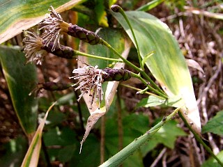 | 山行記 | ●休みが取れたのでどこか山へ行きたいが、高速料金は千円とはいかないので高速を使わずに行けるある程度のボリュームのある山を考えていたら、この恵那山と大川入山が頭に浮かんだ。前の土日は四国の百名山へ登ったので、百名山つながりで恵那山に登ることにした。 ●恵那山は、以前黒井沢と富士見台から登っていたので、今回は最近整備されたという広河原からのコースを歩いてみることにした。豊川から国道151号線、257号線、153号線と乗り継いで園原を目指す。高速料金千円がなかった頃はよく通ったコースだ。 ●狭い林道を進むと登山口手前2kmの地点にゲートがあり、車はここまで。広い駐車場には簡易トイレもあり、どうやらここで車を通行止めにするのは暫定的なものではなさそうな気がする。林道はやや急な所もあり、意外と高度を上げていそうだ。道々にはツリフネソウやクサボタン、アキノキリンソウなどが咲いていて、写真を撮りながら歩いていたら思ったより時間を食ってしまった。 ●30分程歩いてようやく広河原登山口に到着した。本谷川を丸太の橋で渡り、樹林帯の中のこれといった花も咲いていないジグザグの急登をひたすら登る。1時間程登ると1716mのピークに出る。標識には恵那山まで100分と書いてあるので、林道歩きを含めるとここが丁度中間点になりそうだ。 ●このピークを過ぎる辺りから尾根道となり、ときどき明るいササ原の斜面になったりして展望が開けるが、雲が多く遠くの山々は望むことができない。植物も豊富になってきて、ヨツバヒヨドリやヤマハハコ、カニコウモリ、ミヤマアキノキリンソウなどが目立ち、セリバシオガマやオクモミジハグマなども見ることができた。 ●黒井沢への分岐らしいところを過ぎるとやや緩やかな稜線の道となるが、ぬかるんだところが多く歩き難い。やや急な登りを登ると、恵那山の三角点がある広場に出る。広場には展望台が立てられていて周りの山々が展望できるところだが、相変わらず雲が多くそれらを見ることはできなかった。 ●恵那山山頂部は長く、最高点はもう少し先の、トイレや恵那山山頂小屋のある広場の先を富士見台方面へ少し登ったところで、熊野神社が建てられている。山頂には平日にもかかわらず数組の登山者がいた。展望もなくつまらないので、おにぎりで腹ごしらえをして下山することにした。 |